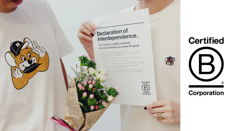 うちのスコアは85.1点だったんですが、うちはガバナンスが日本の基準からすると低いんですよ。たとえば決算書を一般に公開してますか?という質問があるんですけど、公開してません、と。ワーカーズの項目は学び代を出していること、どんなに赤字でもボーナス出すと決めていること、そういった福利厚生が加点されます。コミュニティー部門は東京都内や渋谷区で何ができてるかなんですが、そこはあんまりできてなくて、平均以下なんです。けれど環境部門をみると、認証が取れている糸の比率が高い、ゴミの分別をやっている、再エネを使ってる、古着を回収してリサイクルしている、お直し対応をしているということが評価されるので、全体的に部門によって角度が変わる変形五角形になりました。従業員のダイバーシティも入ってくるんですが、ダイバーシティも何もない人数の会社なので。