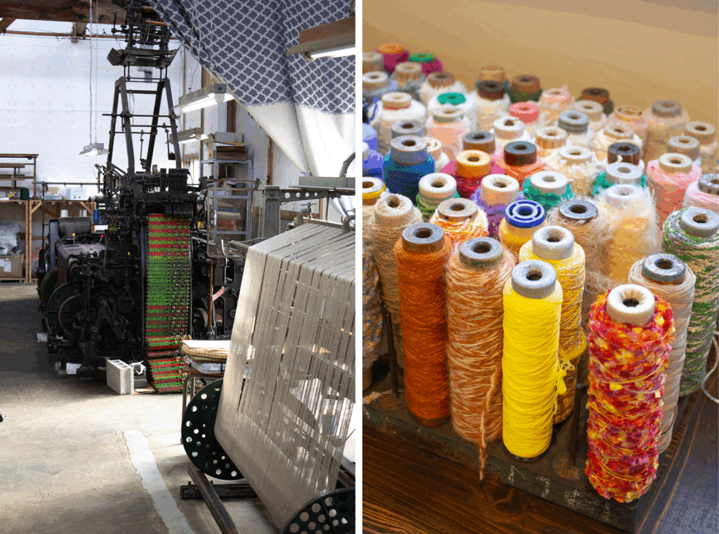この日は、工場内で制作の過程で余った糸を販売しており、カラフルで表情豊かな糸たちに思わず心を奪われた。どれも「家に飾りたい!」と思うほど美しく、素材そのものがアートのようだった。