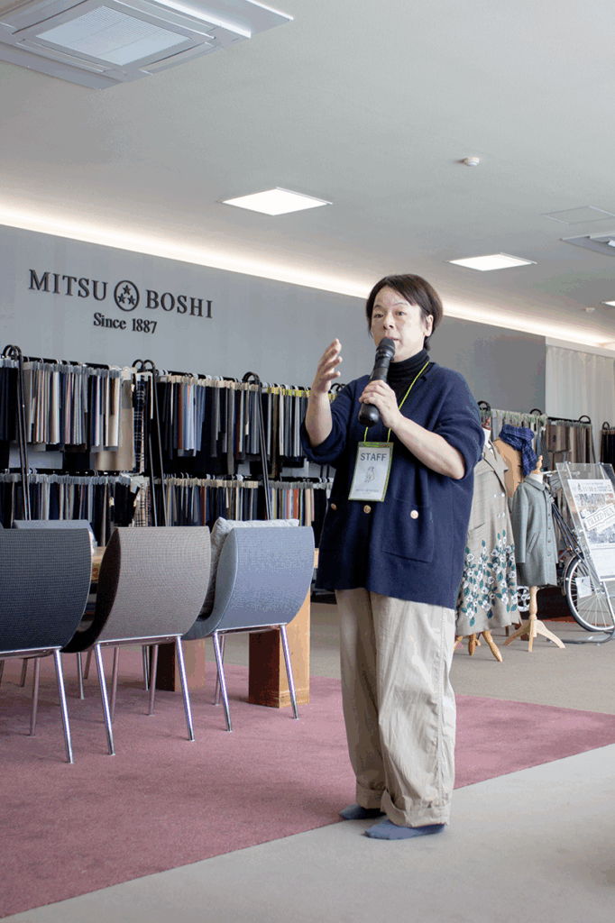 さらにブランドのデザイナーが産地を訪れることに対して 「ここ10年ほどで、商品企画の進め方も変わり、デザイナー自身が工場を訪れる機会が少ない傾向にありました。しかし、私たちがこうした機会を設けることで、若いデザイナーさんが目を輝かせながら熱心に見学してくれる姿を見ると、何かを感じ取ってくれているのかな、と嬉しくなりますね。」と、産地とデザイナーとの新たなつながりに期待を寄せる。
