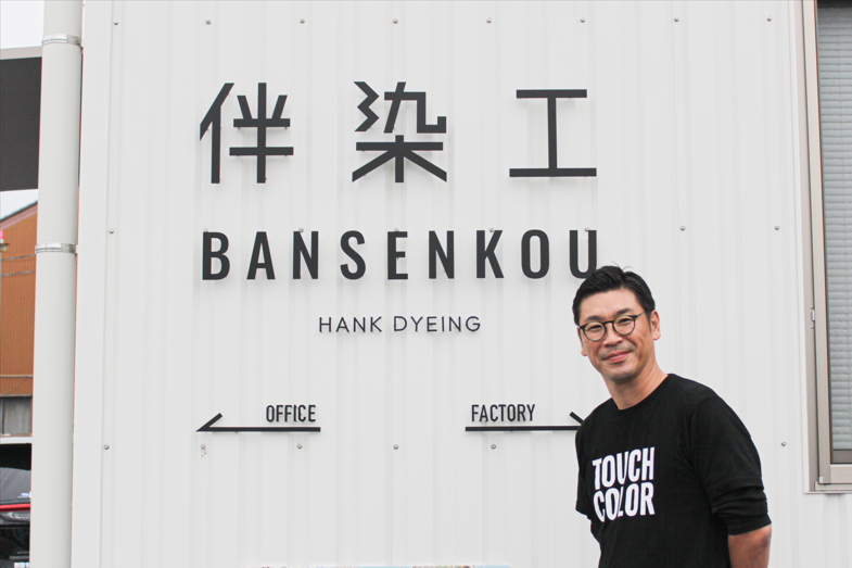 3軒目には伴染工を訪れた。伴染工は、日本でも珍しいかせ染めを行う工場だ。現在の一般的な染色方法は一度に大量に染めやすいチーズ染め(染める際にチーズのような形に糸をまとめることから名付けられた)だが、伴染工ではより小さな単位である「かせ」に分けて染める。この手法により、糸にかかるストレスを抑え、ふんわりとした柔らかな風合いを実現している。