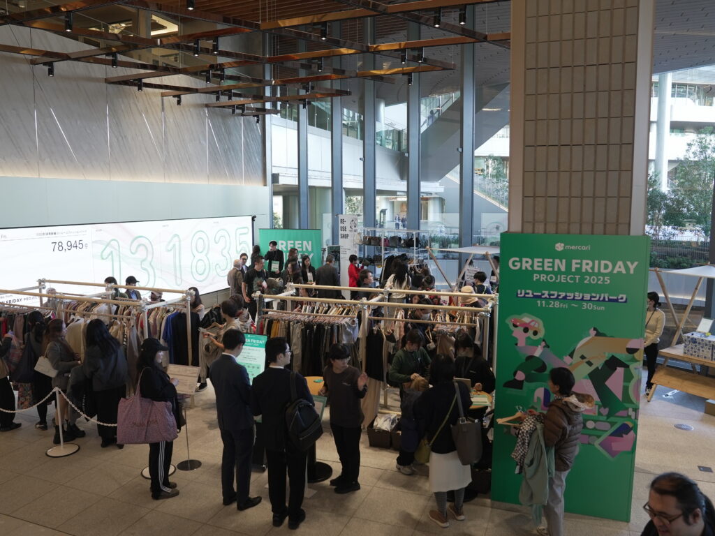 メルカリが11月28日から30日の3日間、ニュウマン高輪で「グリーンフライデープロジェクト2025」を開催した。グリーンフライデーは、アメリカ発祥の大型商戦であるブラックフライデーに合わせて、大量消費ではなくリユース、リペアなどで持続可能な消費を目指す動きだ。