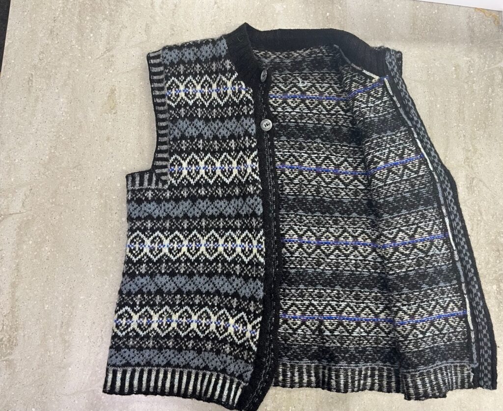 編み物歴数十年の先生がピックアップしたのは、イギリスの伝統的な「フェアアイル」という技法で編まれたベスト。緻密な幾何学模様が美しく、裏返しても綺麗に柄が出るように設計されているというから驚きだ。