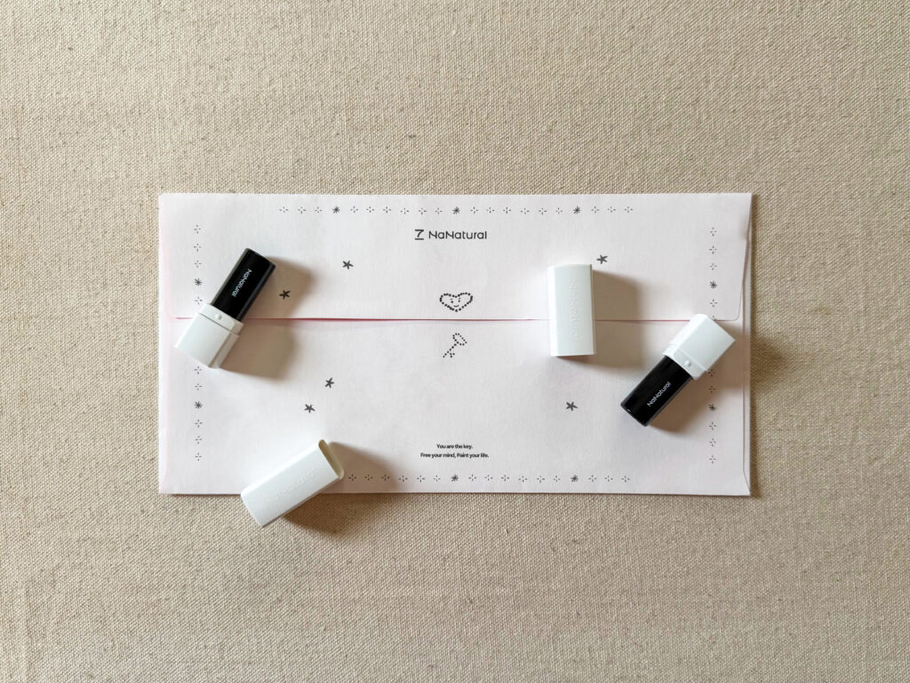 伝農はるかが7NaNatural(ナナチュラル)を知ったきっかけは、去年の夏に友人の柴田紗希さんがコラボしたカラースティック「Ima」を送ってくれたことだという。柴田さんの人柄にリスペクトをもっていた伝農は、彼女が自分にプロダクトを送ってくれたことに意味を感じて、とにかく温かく幸せな気持ちになったと語る。