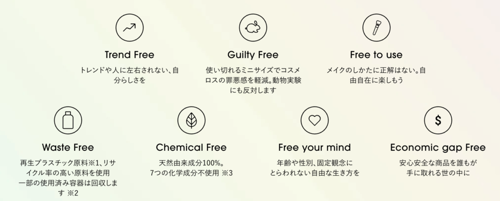 一生活者の目線から、化粧品を使う時に自分や周りの人が感じる罪悪感や、無駄のないものを使いたい、といった気持ちを集結させて作ったのがこのコンセプトです。