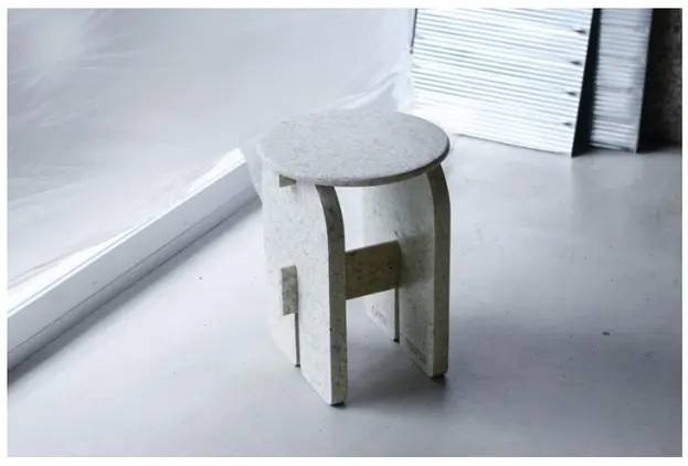 SAMAA_の丸椅子は、インドネシアのバリ島を中心に、河川から回収されたプラスチックゴミをアップサイクルして、機能的で美しい家具に生まれ変わらせるソーシャルエンタープライズ「SUNGAI Design」のもの。