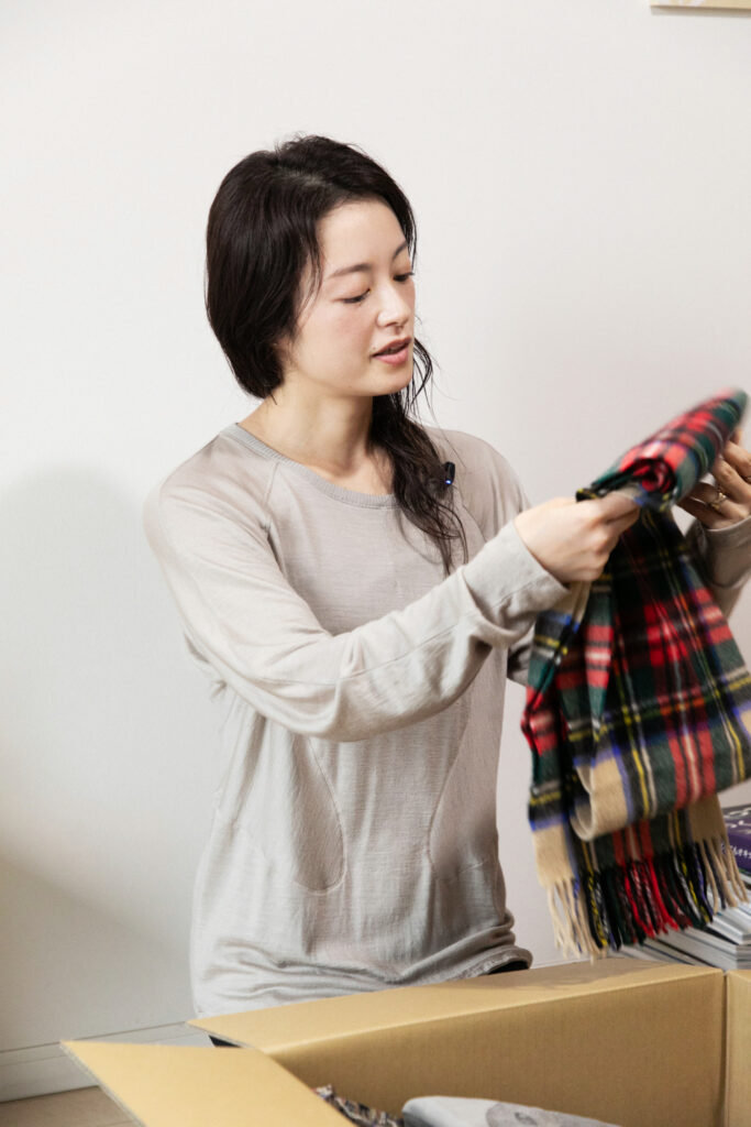 「例えばこのチェックのマフラーは思い出深くて、10年以上前に渋谷のトゥモローランドで買ったものです。重厚感のあるお店の佇まいに憧れがあって、さらに以前短期間ロンドンに住んでいたことから、イギリスっぽいチェック柄が気に入って買ったんですよね。でもほとんど使っていなくて、状態もきれい。