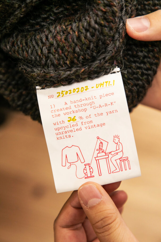 古着などのニットを解体し、再構築するというユニークな取り組みをしているそう。実店舗などは持たないが、有楽町アートアーバニズム YAUで行っていた企画展示とワークショップを訪ねました。