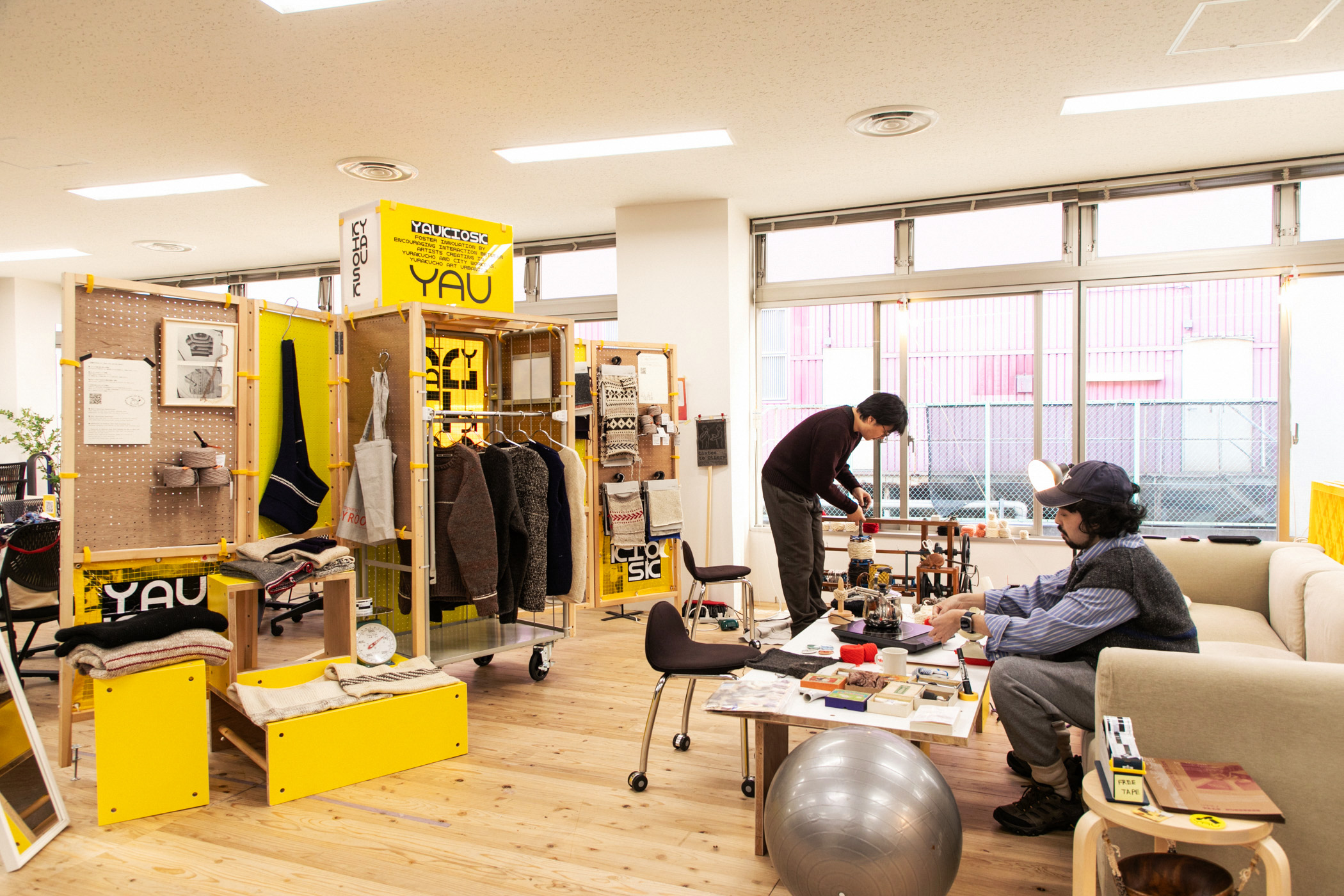 古着などのニットを解体し、再構築するというユニークな取り組みをしているそう。実店舗などは持たないが、有楽町アートアーバニズム YAUで行っていた企画展示とワークショップを訪ねました。