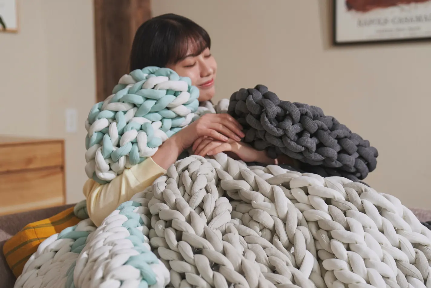 カポックノット(Shift C評価:良い)が手がけるホームウェアラインから登場した加重ブランケット「MUSUBI」。心地よい「重み」が心身のスイッチをオフにし、自律神経のバランスを整えるサポートをしながらも、蒸れにくく、オールシーズン使える構造が人気を博している。