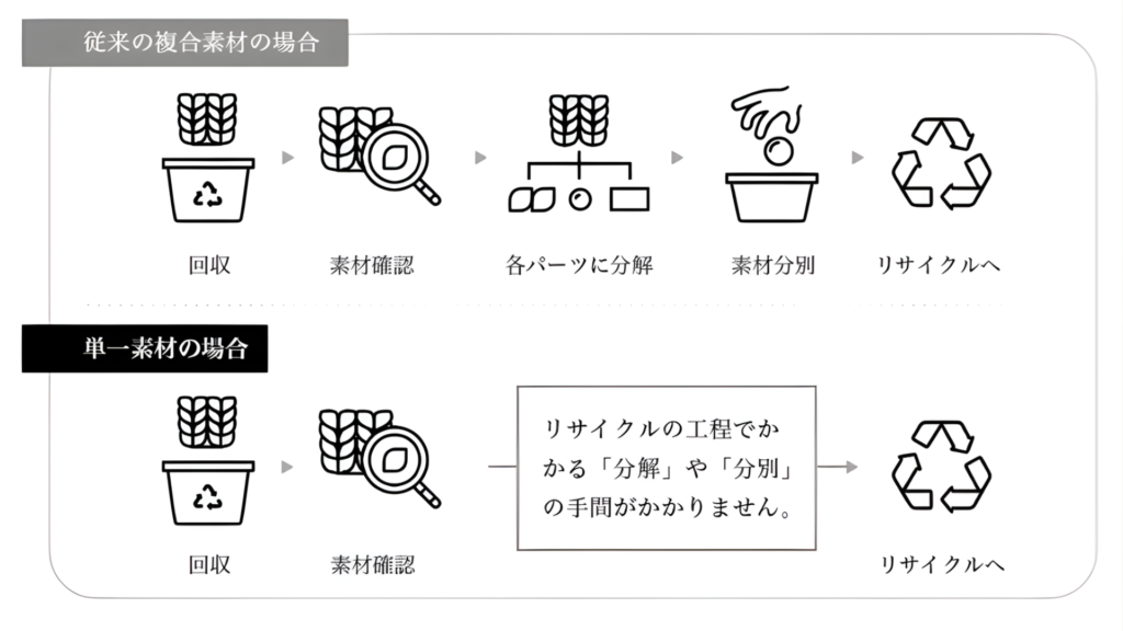 そこで、今回の「MUSUBI +JSF」は、中綿に「リサイクルポリエステル」を採用。単一マテリアル設計にすることで、将来的なリサイクルのしやすさを極限まで高めた。また、洗濯機での丸洗いが可能で、速乾性と耐久性にも優れているのもポイントだ。