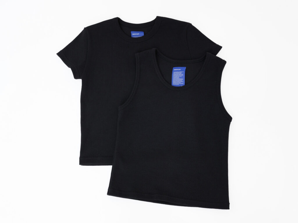 NETPLUSと並んで今期の顔となるのが、RANGE OF LIGHTの定番素材であるリサイクルポリエステルのリブシリーズだ。軽さと速乾性を兼ね備えたこの素材は、定番Tシャツをはじめとするアクティブウェアとして、シリーズの核を担ってきた。