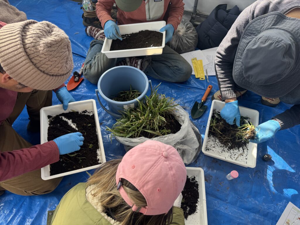 不耕起、耕起それぞれの畑で土を採取し、いざ虫の調査へ