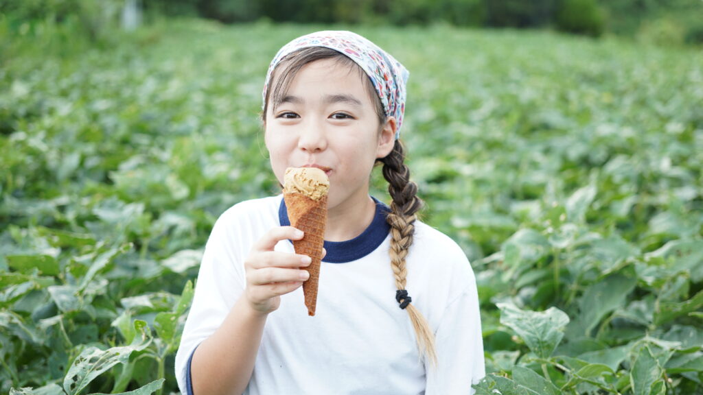 「はちいち農園」では、不耕起栽培の農家を応援し、環境問題に貢献する「SOYSCREAM(ソイスクリーム)!!!」という活動も行なっている。仲間の育てた大豆をアイスクリームに加工して販売し、農家の収入を支える。不耕起栽培の畑が増えれば、生物多様性が回復すると同時に、土中に炭素を固定するため、地球温暖化防止にもなる。とにかくおいしい!と評判なので、興味のある方はぜひ食べてみて欲しい。